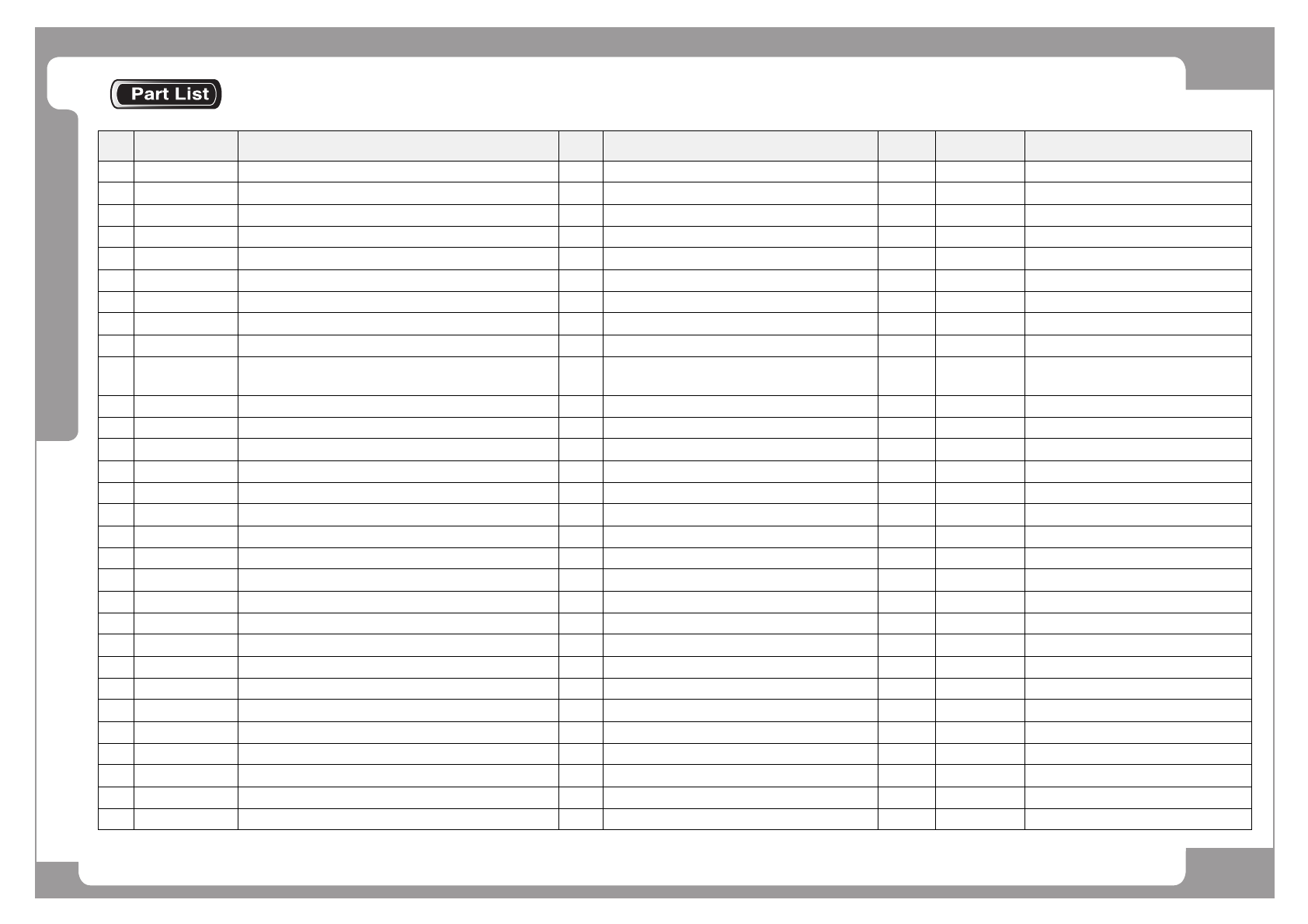 NO. PART NO. PART NAME Q'TY Old No. Supply Supply LT Reference