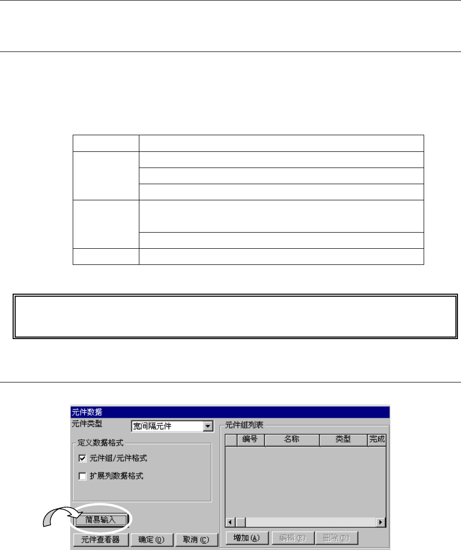 用简易输入法可输入一般性的元件数据,但复杂的元件定义,需在详细输入画面(参见2-3-8-