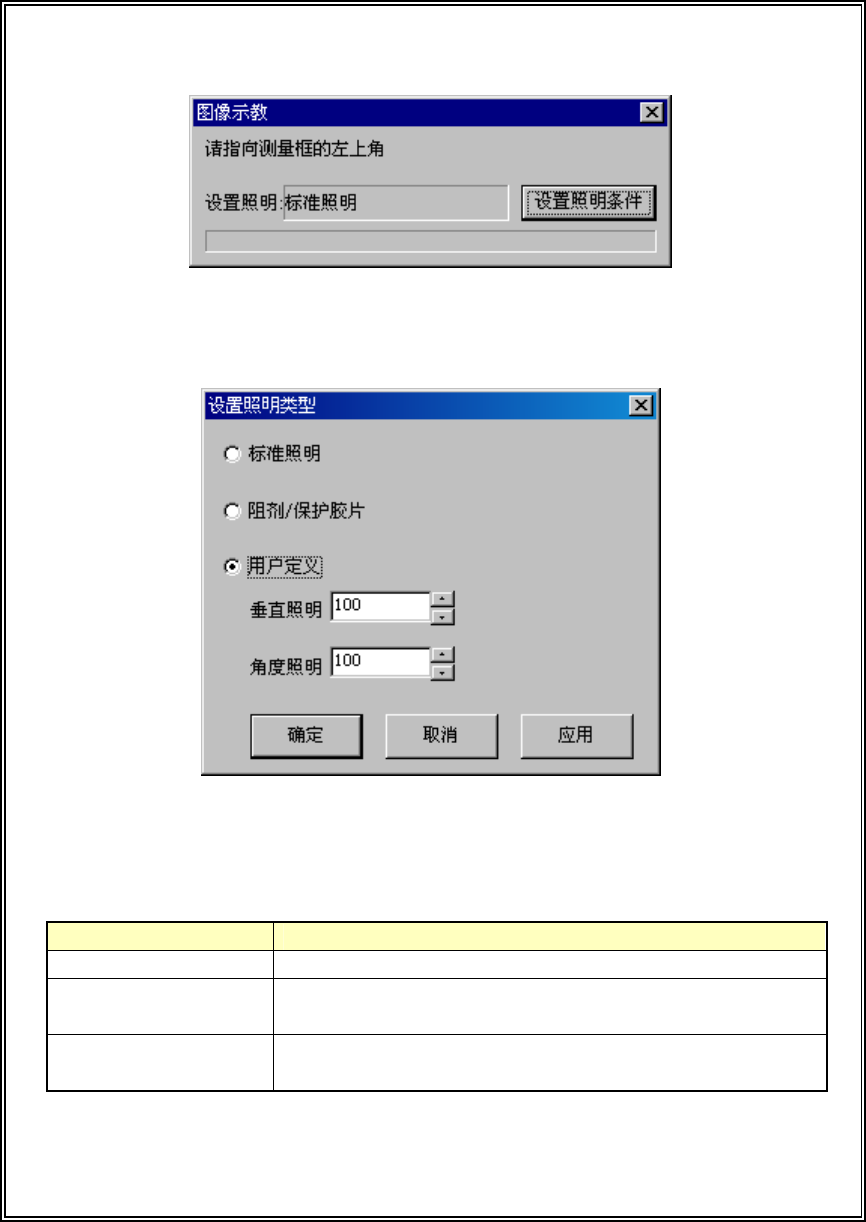 按下设置照明条件按钮,显示如下画面。请设置照明类型。