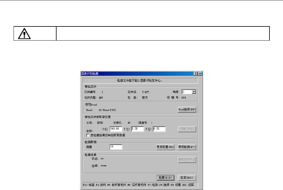 完成检查后显示检查结果对话框,显示检查结果(显示 XYΘ的偏差量或吸取是否成功)。按