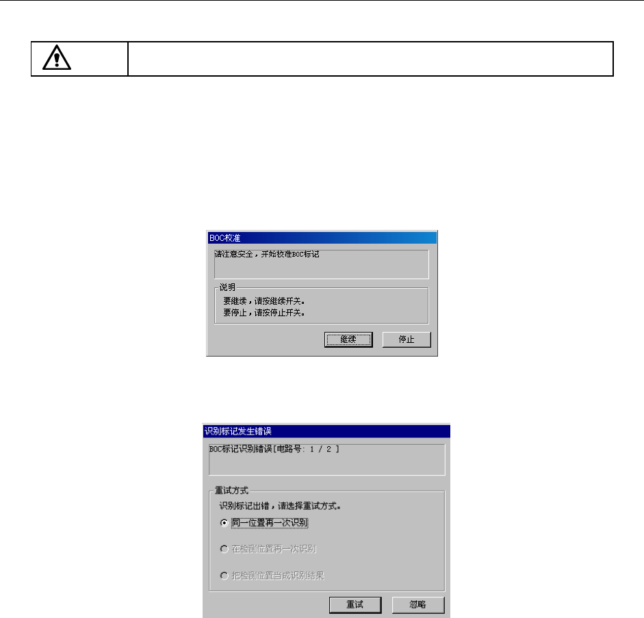 在进行时,若BOC标记识别失败(错误),则显示如下的选择画面。