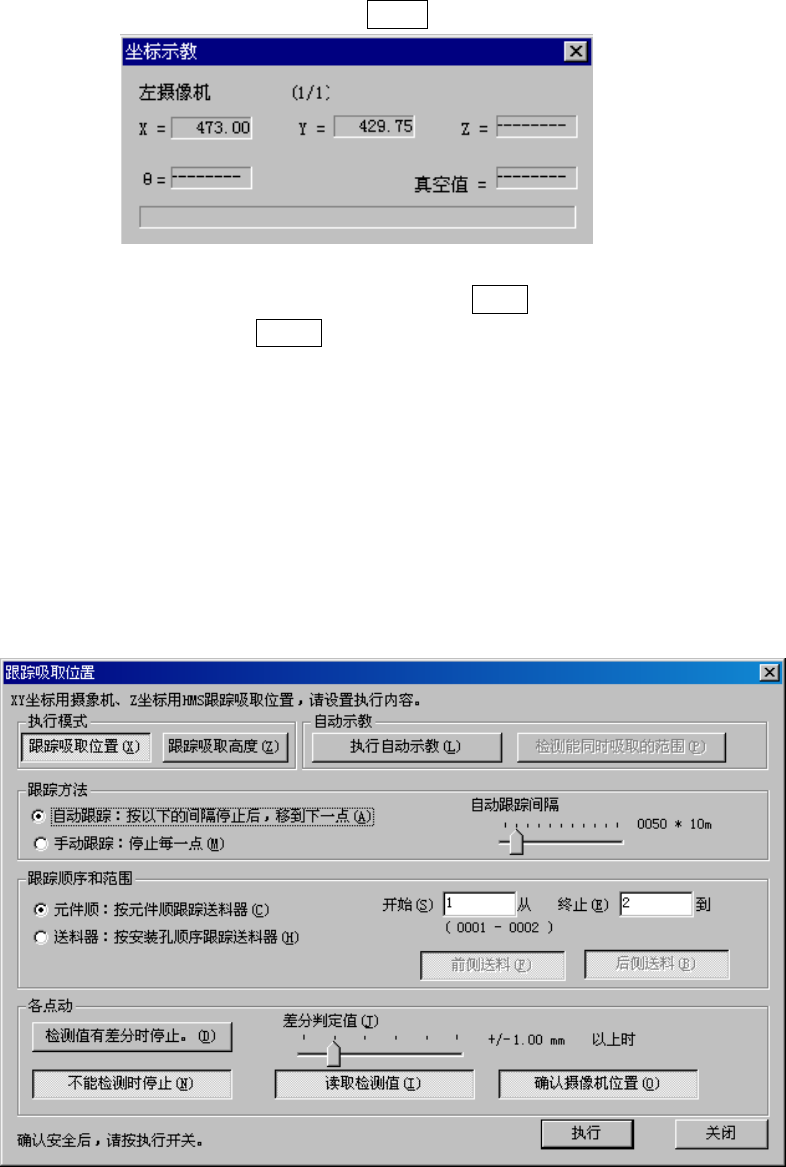 从菜单栏中选择“机器操作”/“确认”/“坐标类”/“跟踪吸取位置”,显示如下画面。