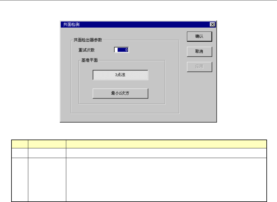 若安装有共面单元(可选),则可指定“共面性的重试次数”和“基准平面制作方法”。