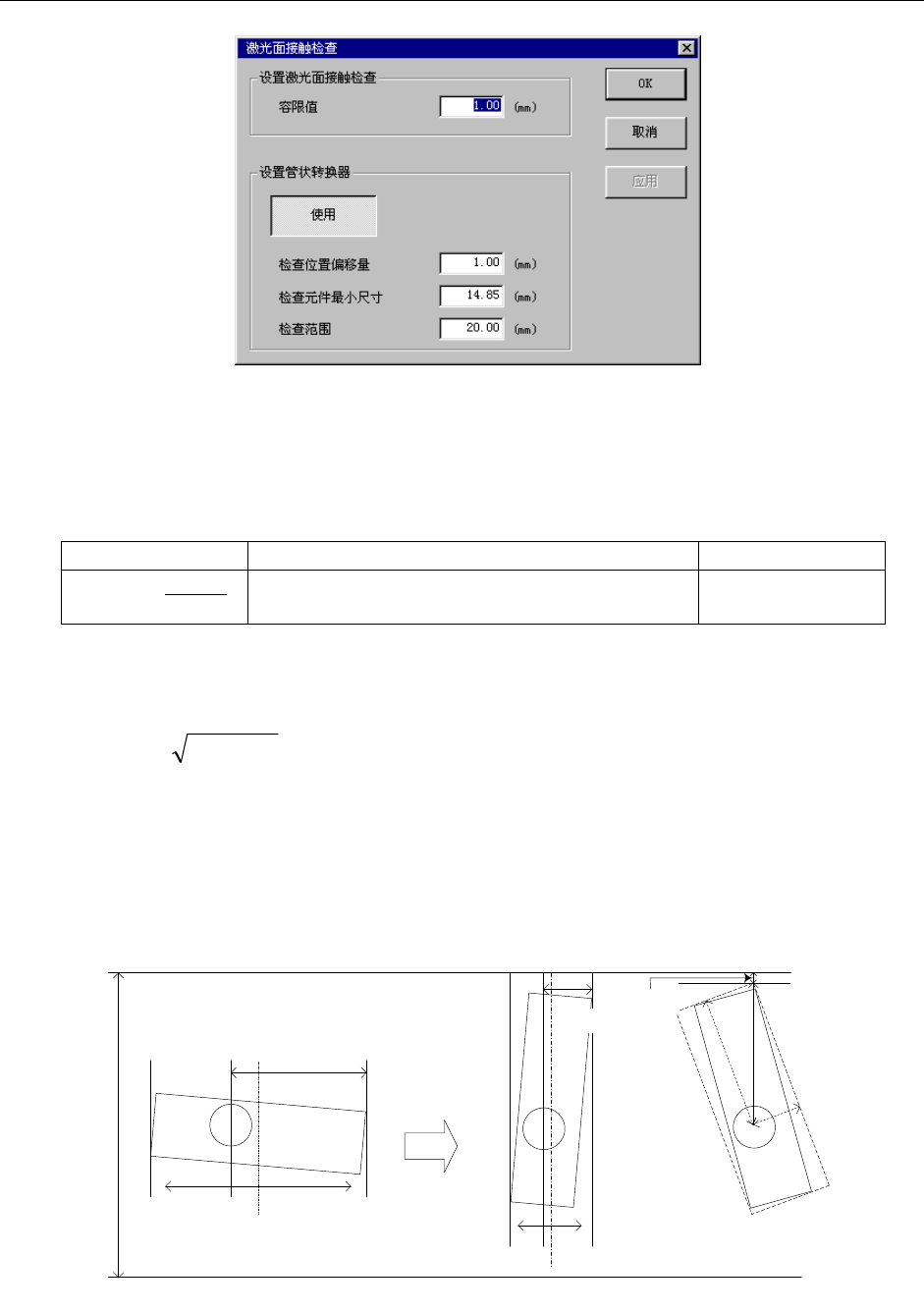 边距容限值]设置的值,在激光面接触检查的判定时,因为考虑中心