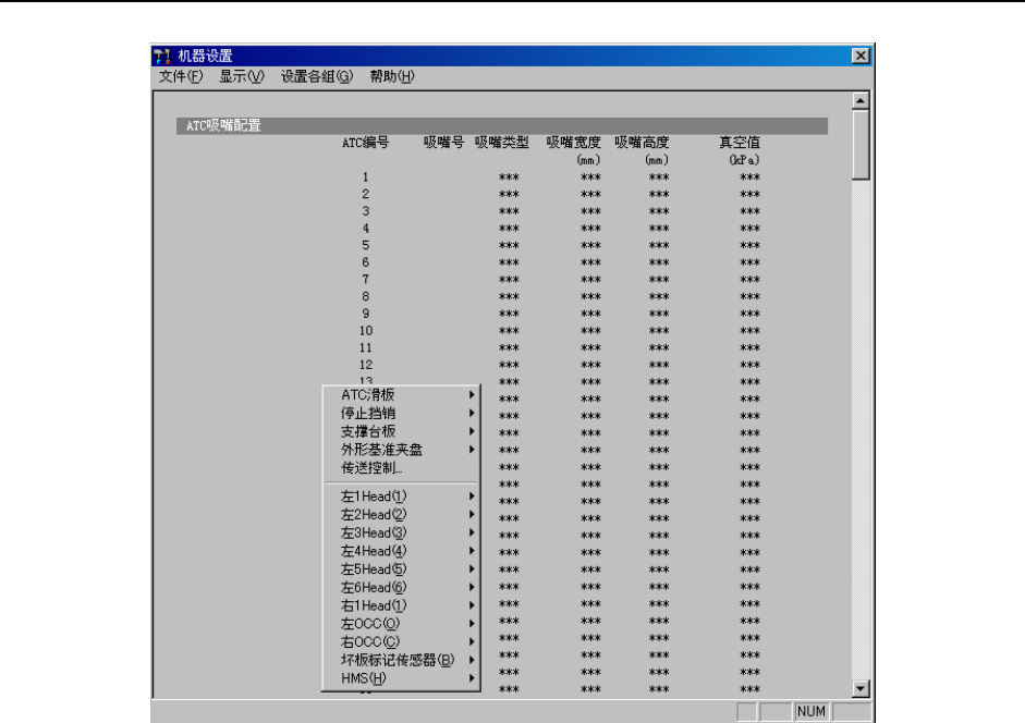 图 4-45 机器设置的弹出菜单