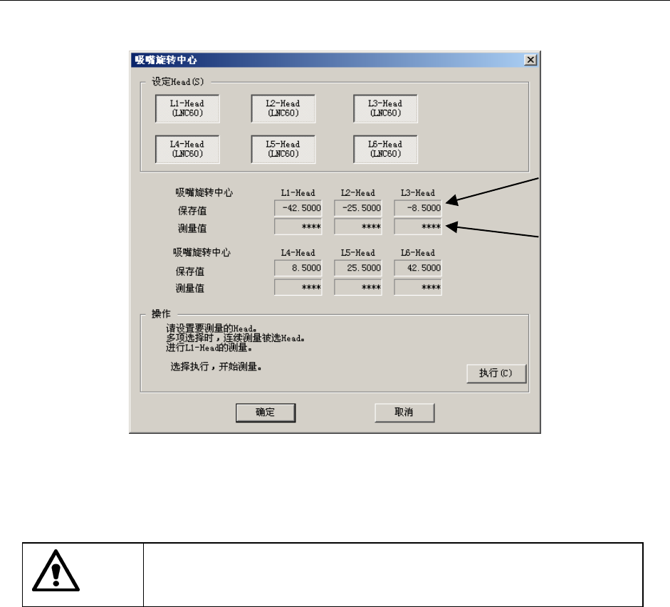 操作手册Ⅱ Rev02 4-79 4-6-2 设置组 4-6-2-1 激光传感器高度 设置从基板上方看到的各激光传感器的高度。 当频繁发生激光识别 错误时, 请检查生产程序的 “元件数据” , 然后重新设置机 器设置的 “A TC吸嘴配置”。即使这样也不能改善时,请重新设置“激光传感器高度”。 重新设置“激光传感器高度”后,务必重新设置“ATC吸嘴配置”。 图 4-51 激光传感器高度 在“设置Head”上选择贴片头后,选择“运行”。 …