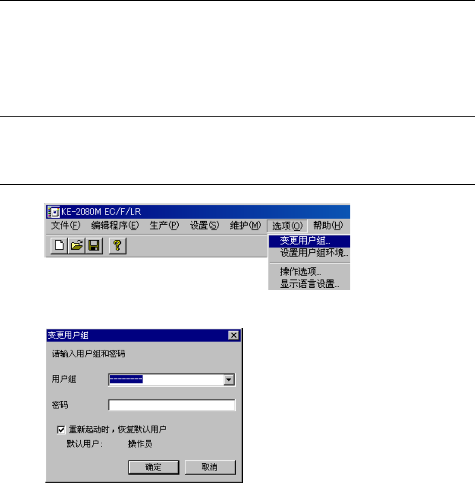 用户级别变化时可修改输入的密码,也可设置默认用户(参见4-2-1-1 用户组变更的“重启动