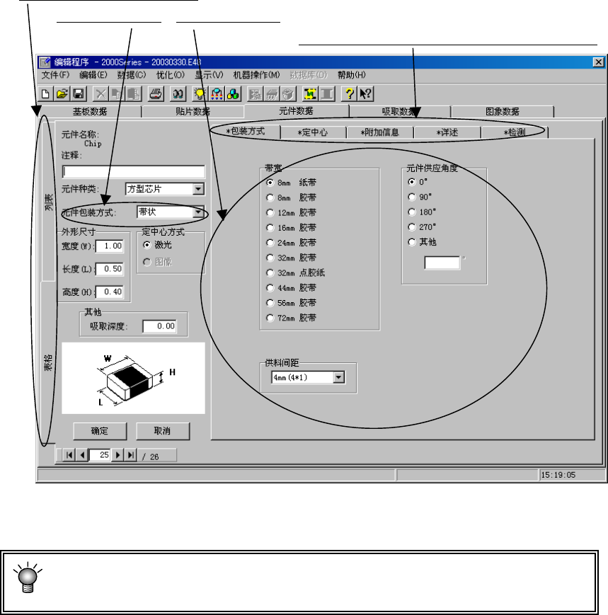“元件数据”是输入由“贴片数据”输入的“元件名称”的详细信息的数据。