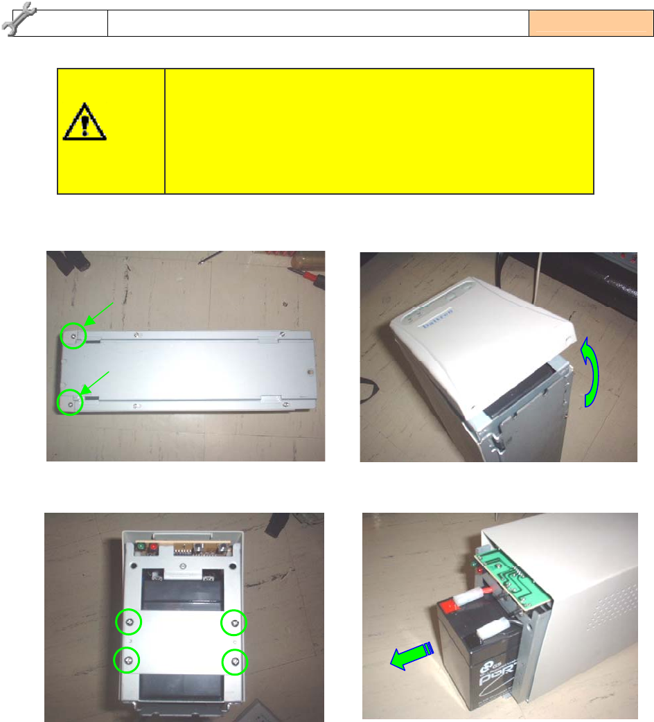 1) 卸下 UPS 底下的 2 根螺丝。 2) 打开正面的盖子,卸下来。