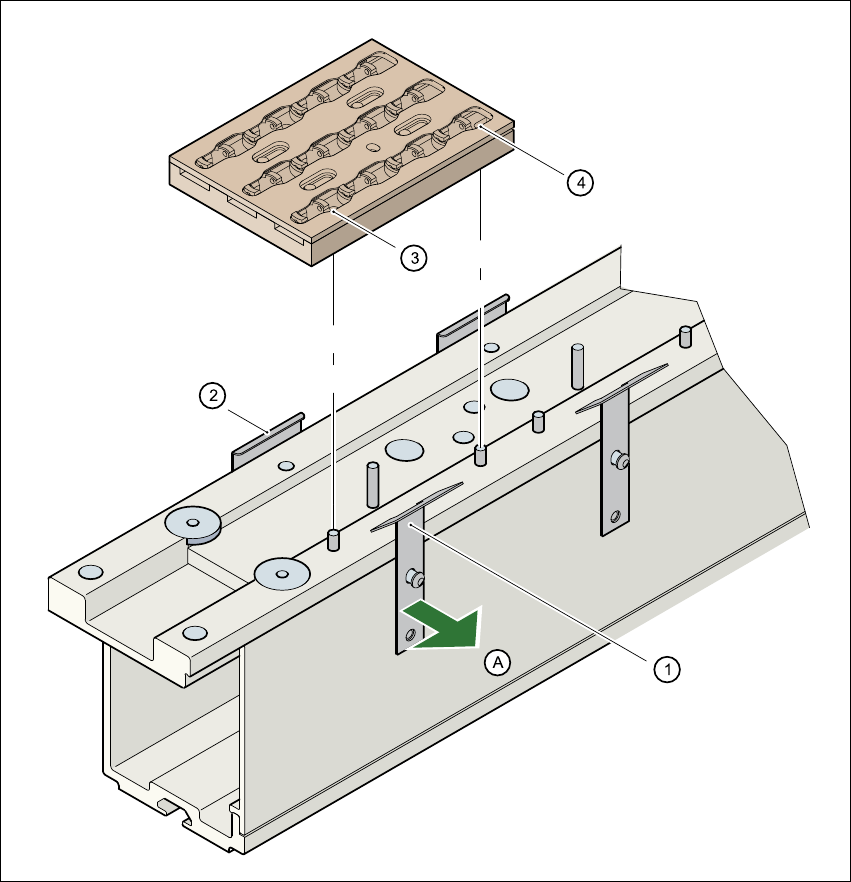 确保在插入吸嘴盘时,使对中销滑入对中孔 (3)和槽 (4)。 7