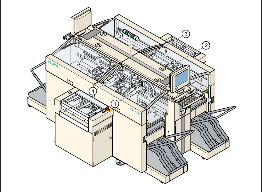 在贴片系统两侧均有一个监视器和一个键盘。这种布置可使不低于 1.60 m 的任何人都舒适而有效