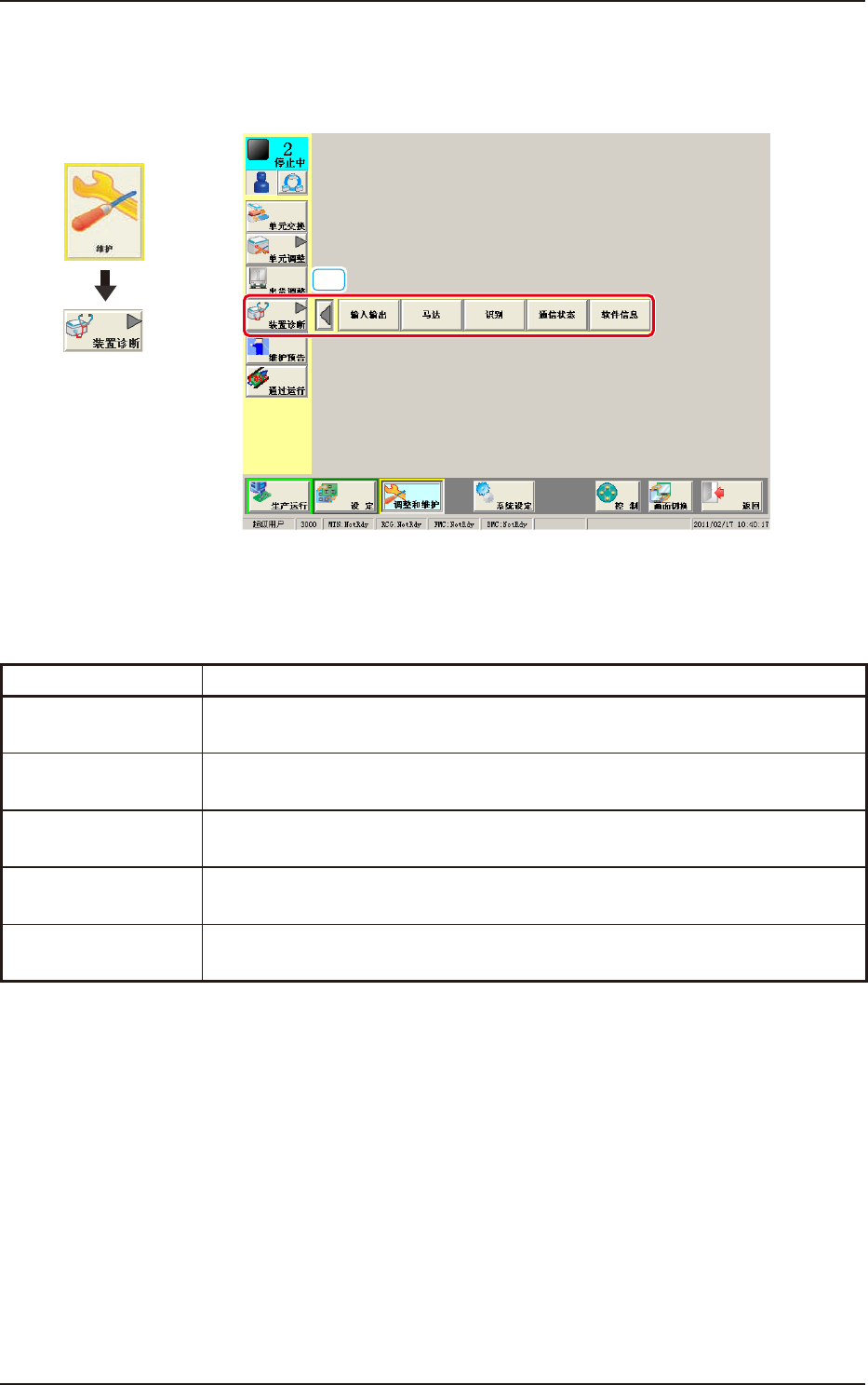 配置有以下按钮,可以显示执行装置诊断各功能的操作界面。