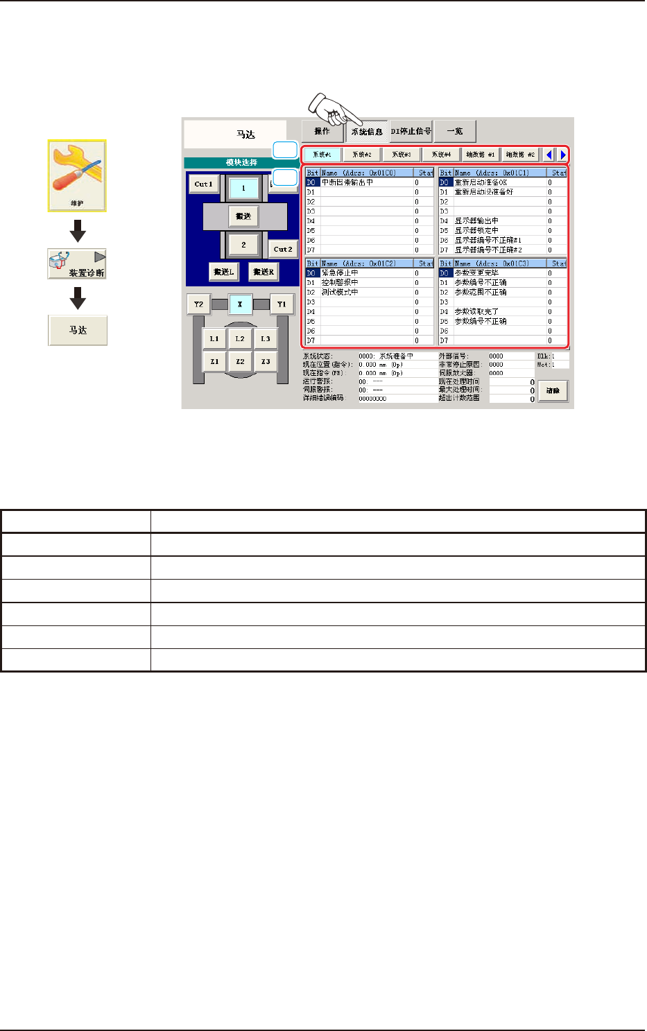 轴数据 #1 ~ #4 显示轴数据 #1 ~ #4 的状态。