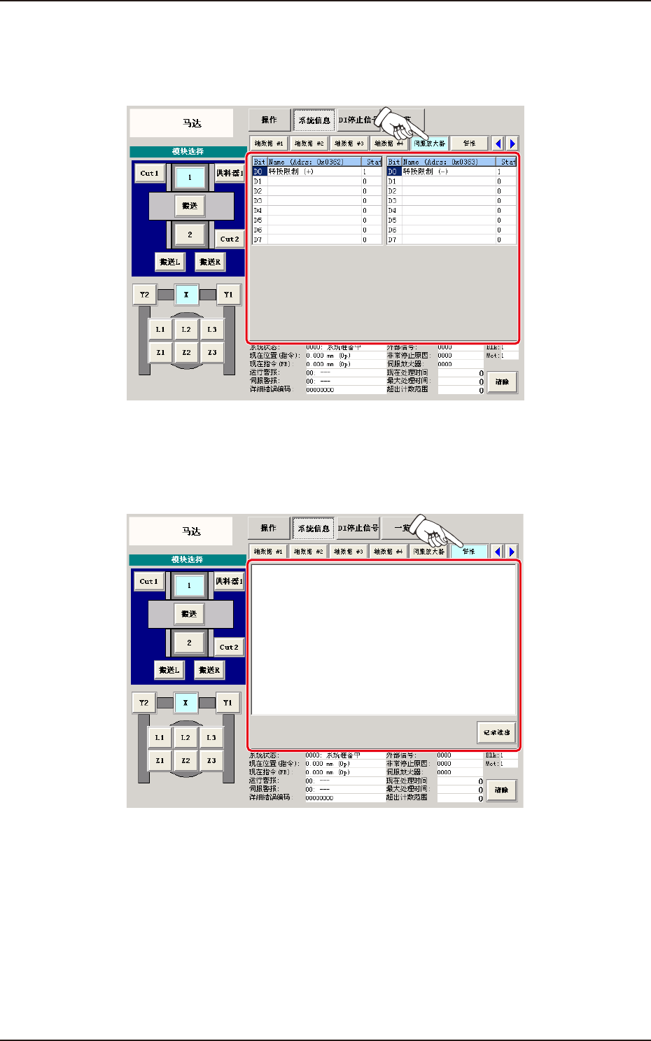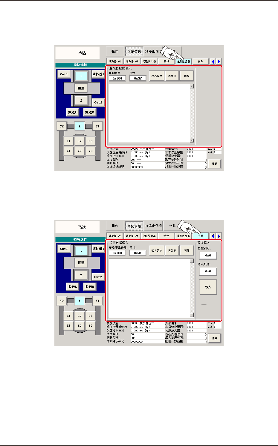 界面,按下 [ 伺服放大器 ] 按钮,便显示