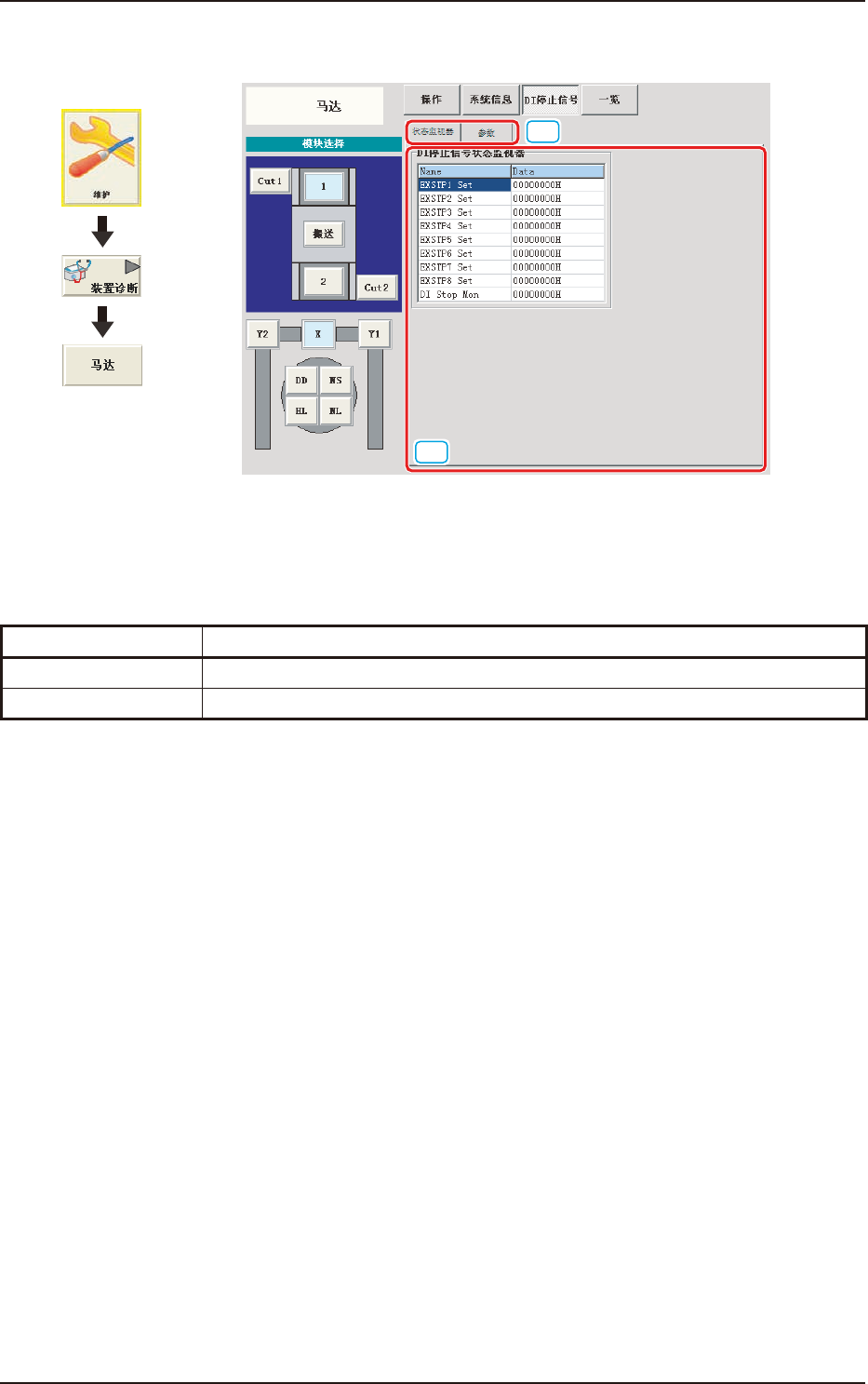 状态监视器 显示 DI 停止信号状态监视器的状态。