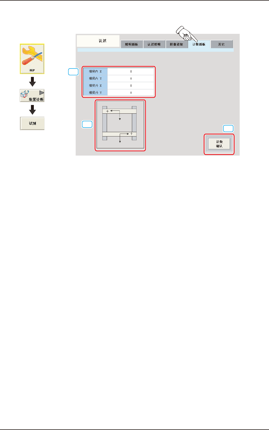 用手按住横梁,确认按下 [ 计数确认 ] 按钮显示的计数值的变化位置、