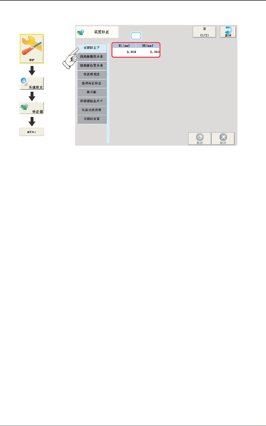 线路板定位动作时进行升降的支撑销上下轴的原点位置补正值。