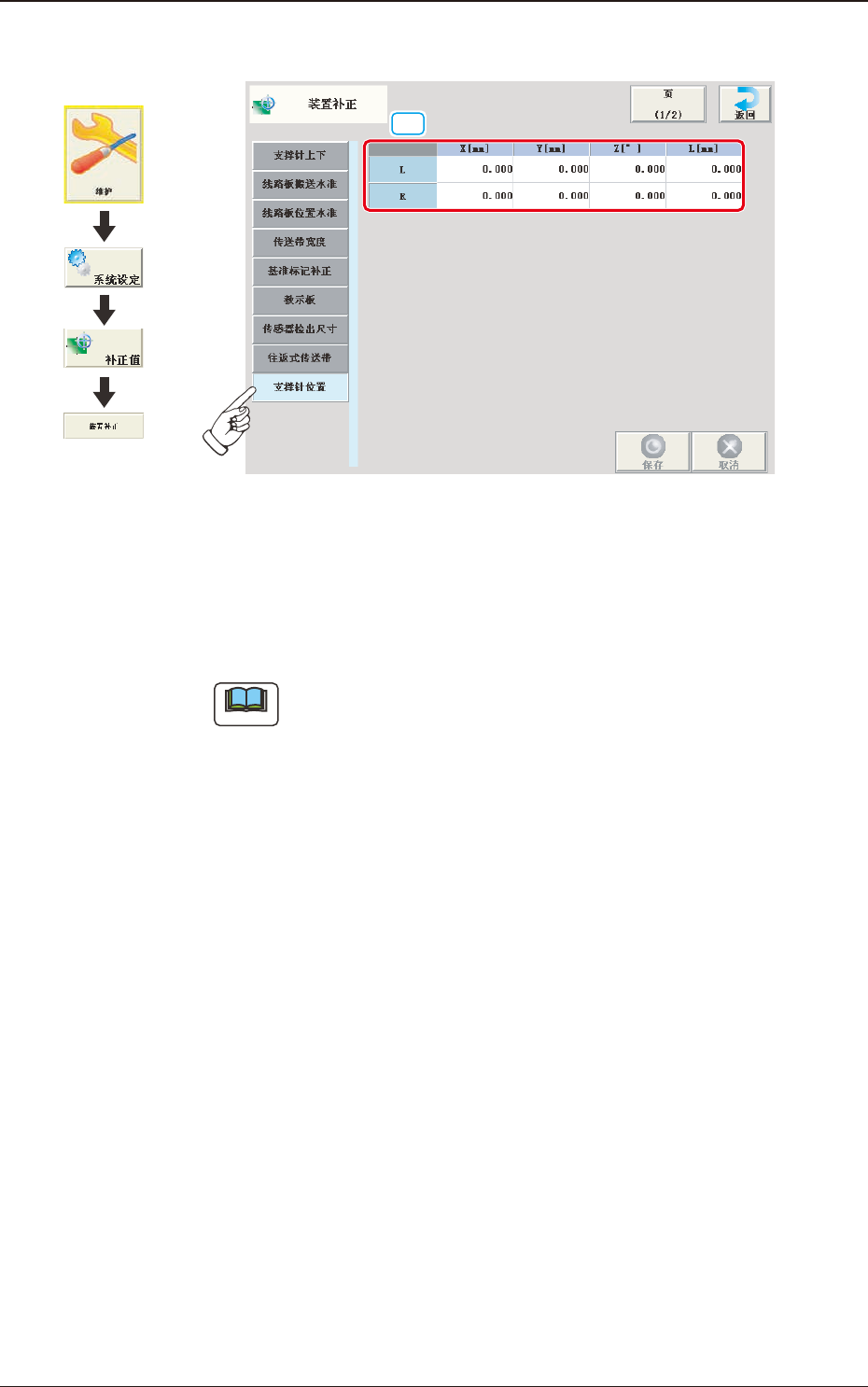 本补正值在支撑销教示中自动算出。