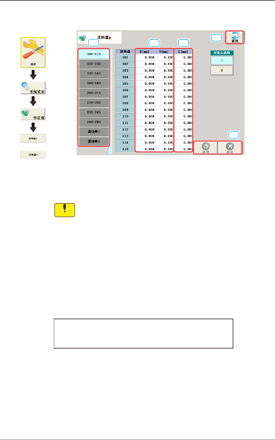 是调整对每个送料器 No 的送料器对吸取位置设计尺寸的位置偏离的补