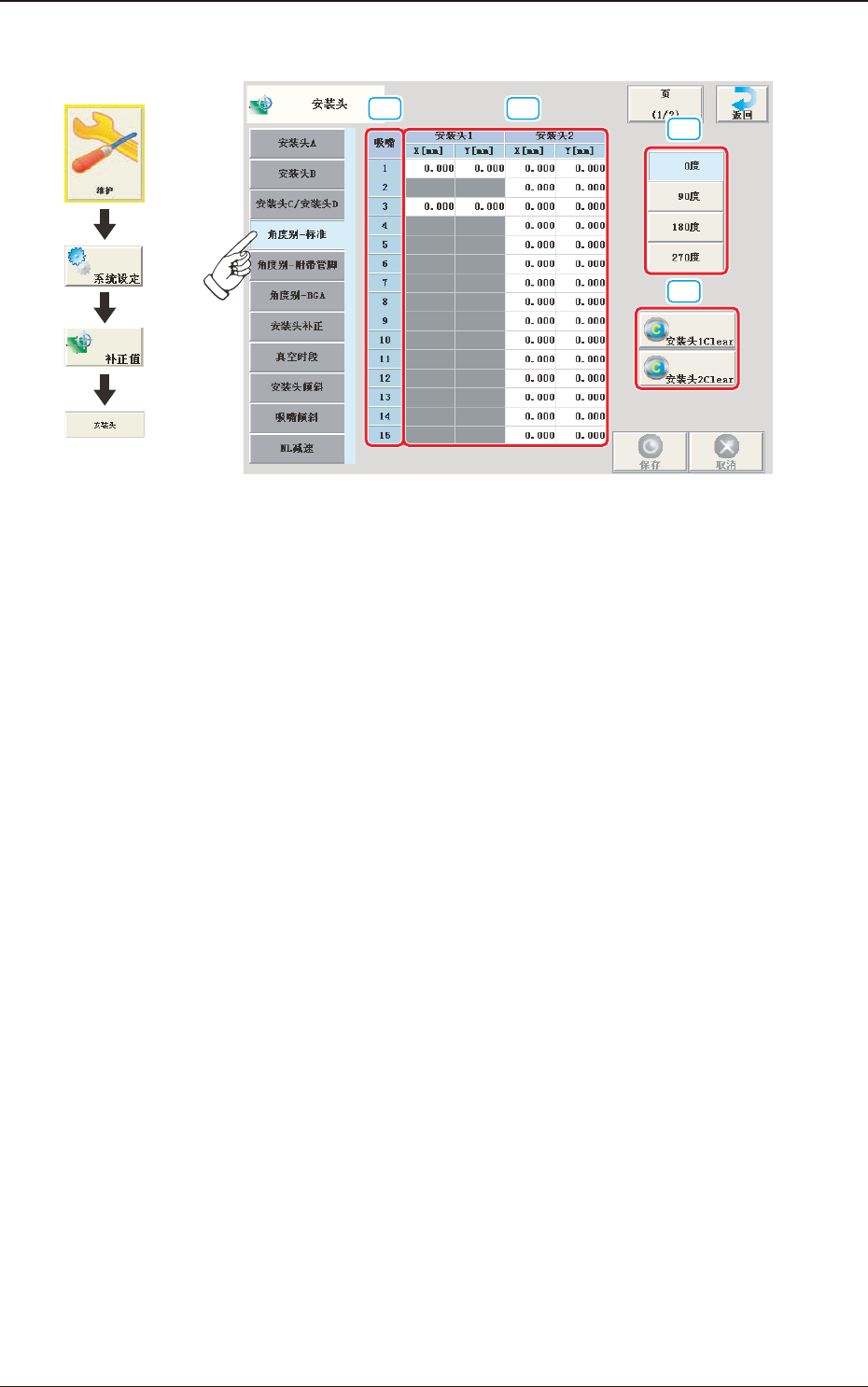 清除安装头的所有吸嘴数据。