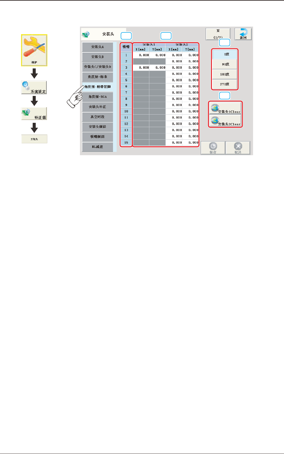[4] [ 安装头 1Clear] 按钮、[ 安装头 2Clear] 按钮