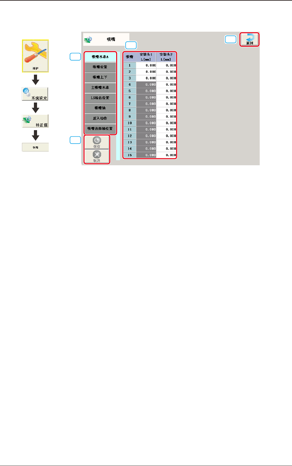 保存与主吸嘴水准补正值之差。