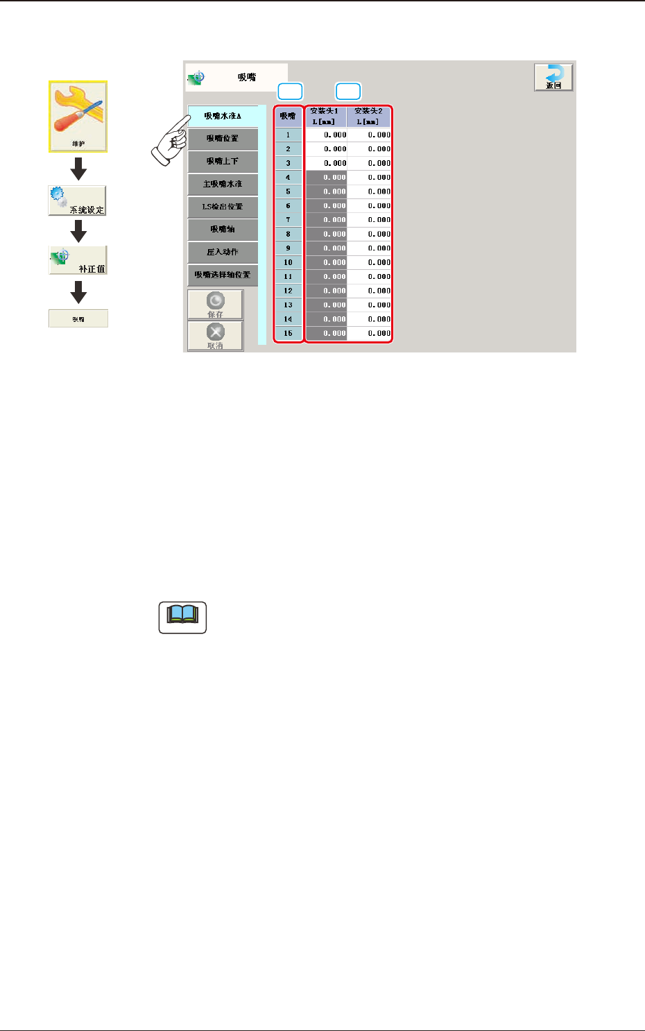 通过吸嘴水准补正值=主吸嘴水准-