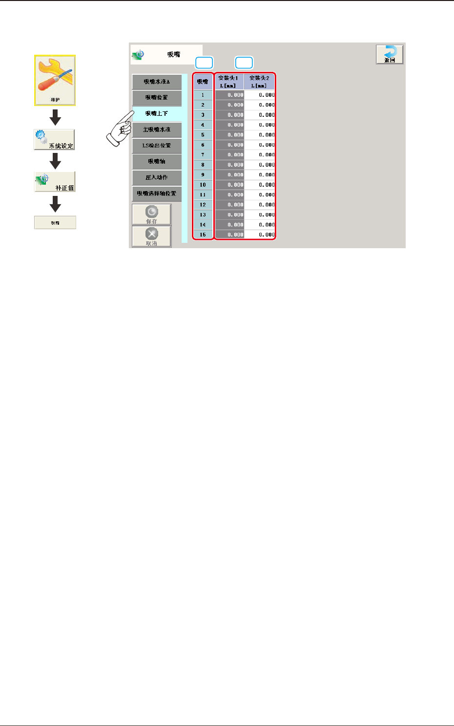 吸嘴下面水准,保存该数值。