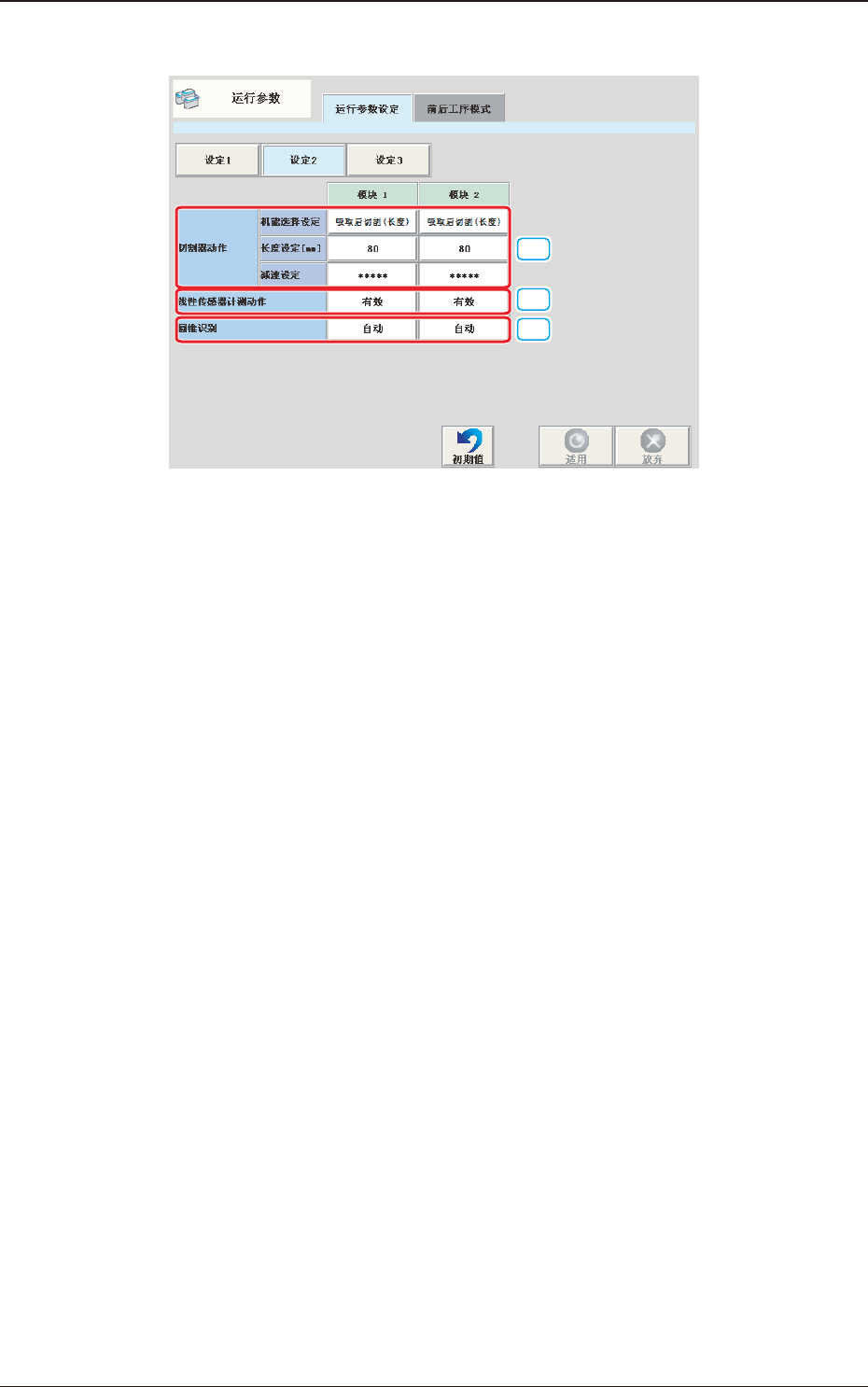 对各切割器的动作设定以下項目。