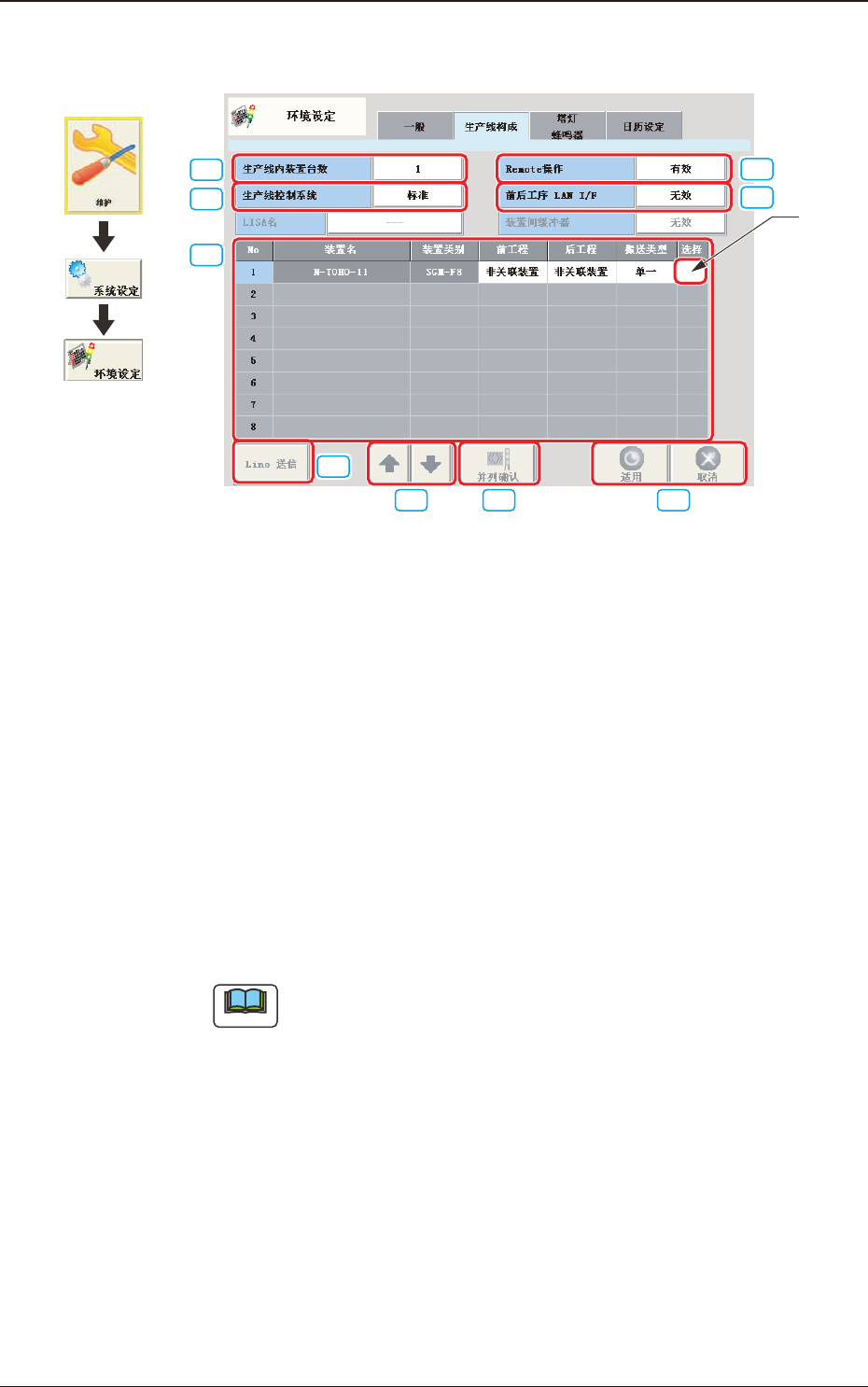 : 从生产线内装置的操作 ( 生产线开始等 ) 为无效。