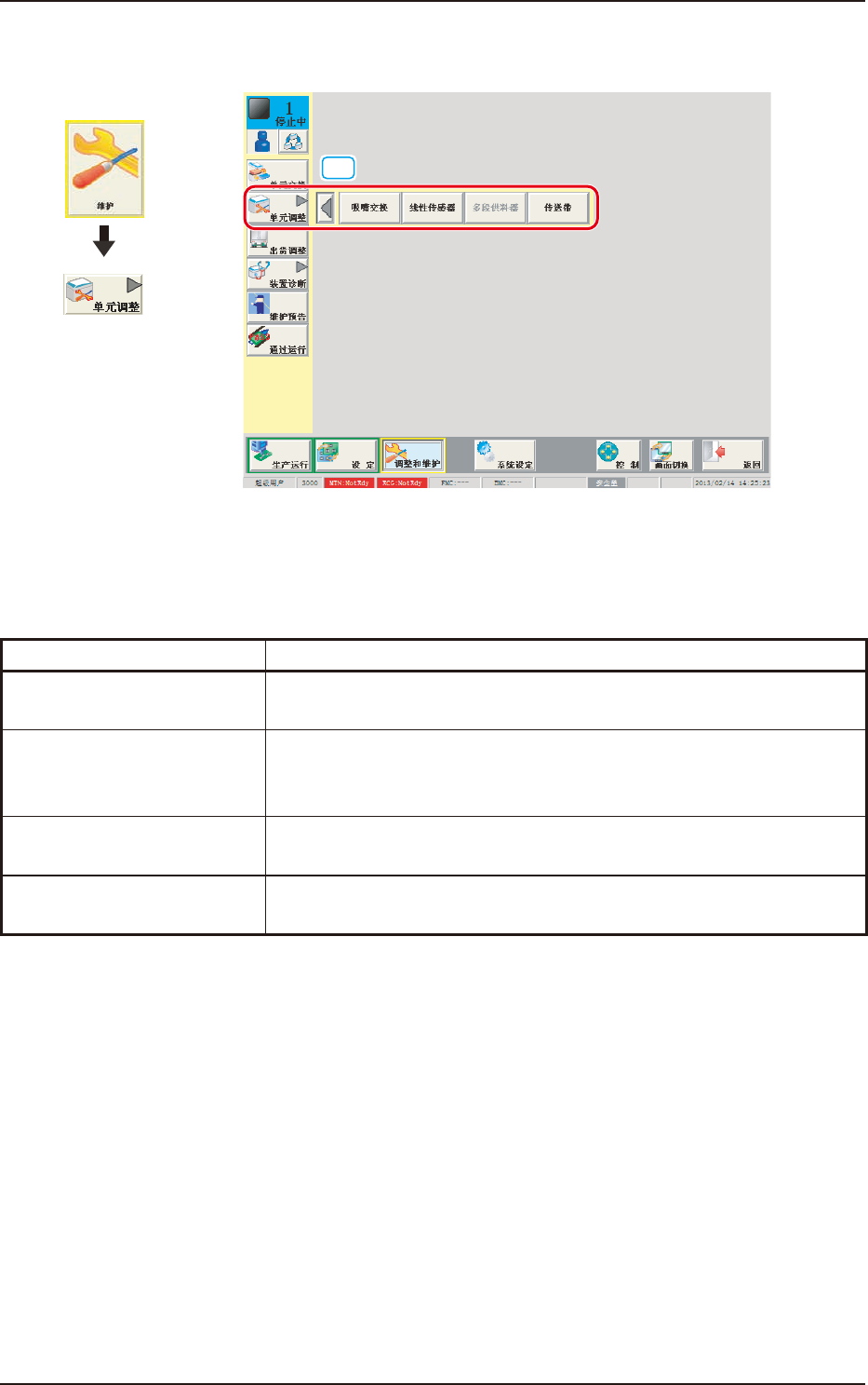 为显示实行单元调整各功能的操作界面,配置有以下按钮。