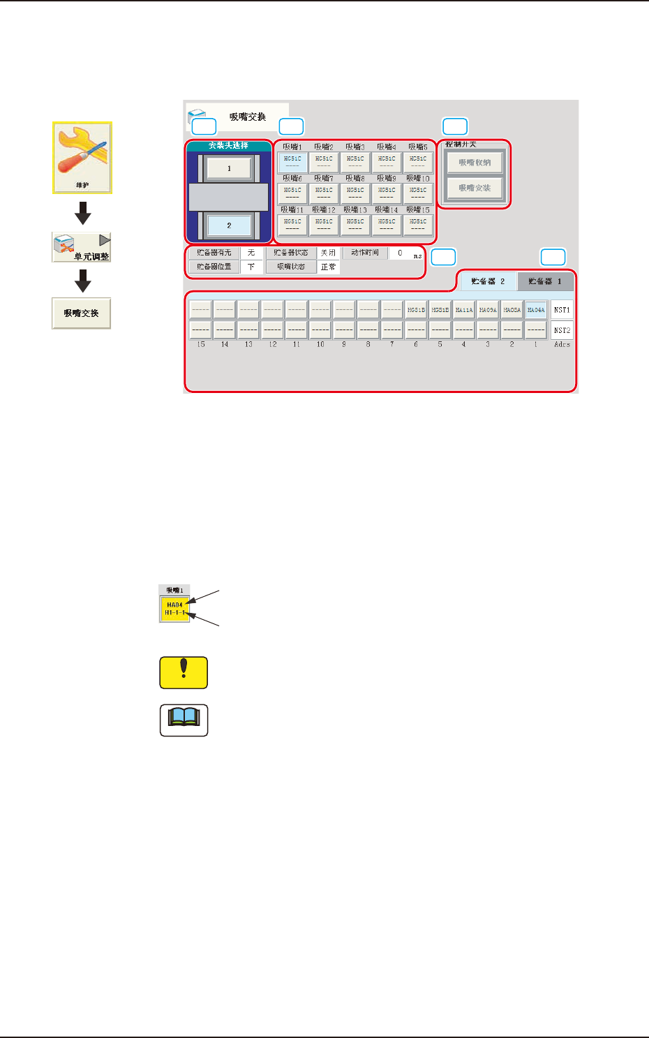 按下各吸嘴的相应按钮,选择要交换的吸嘴。