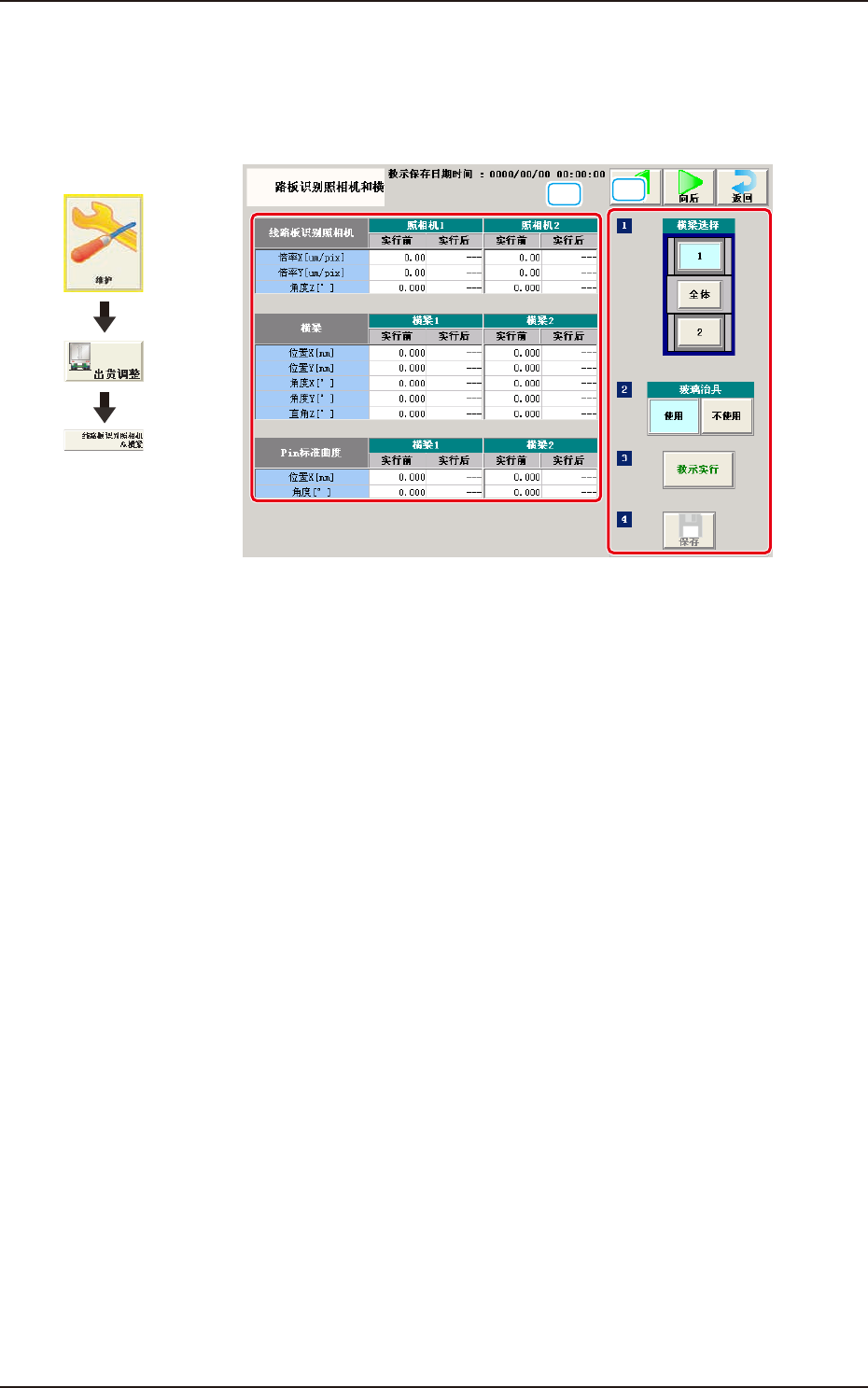 用图像显示表示线路板识别照相机 / 横梁位置的按钮。