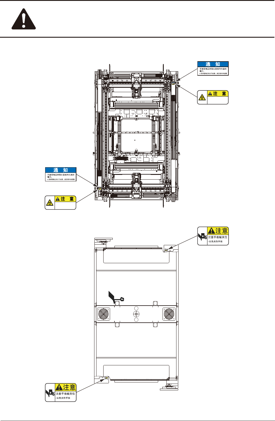 安全 -16 1OM-1752 1306-002 5. 本装置的警告标签 4 4 F READY 4 4 4 4 4 4 4 1 1-0333 A 送料器安装台上升时不要拔出连接器 否则会成为装置故障的原因。 11 -0 339 - 注 意 注意手指被压碎 送料器安装台上下时 若将手伸进可动部, 就有可能受伤。 不要将手伸进可动部。 11 -0 339- 注 意 注意手指被压碎 送料器安装台上下时 若将手伸进可动部, 就有可能受伤。 不…