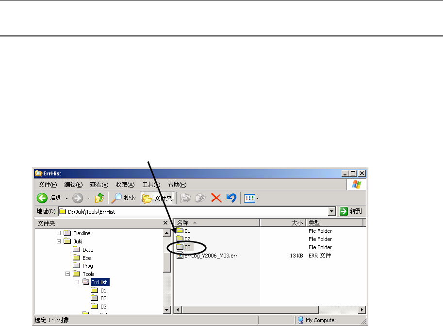 在「D:\juki\Tools\ErrHist」里有以月为单位生成的文件夹,以“出错号码(日-时分