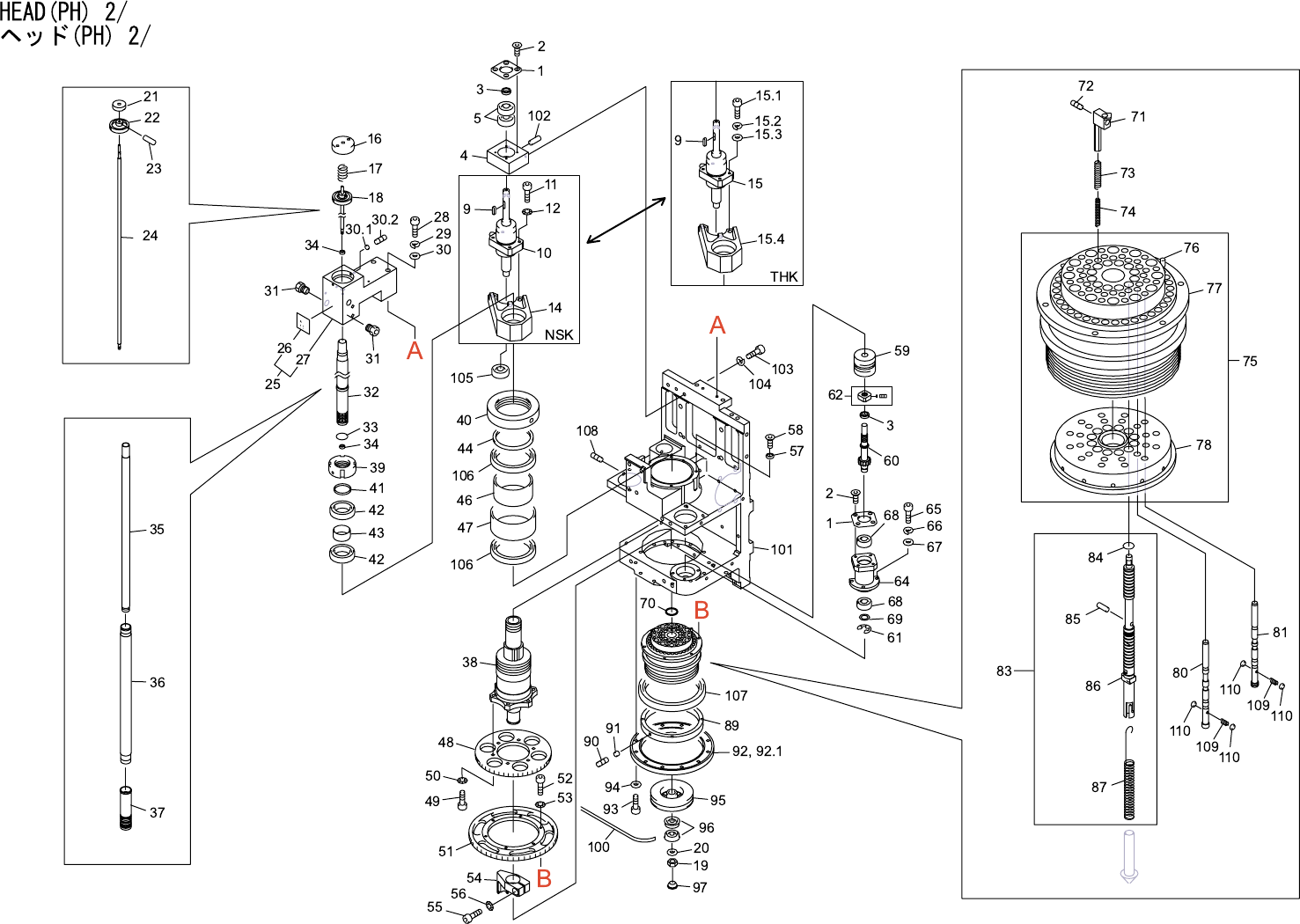 HEAD(PH) 2/ ヘッド(PH) 2/ 番号 図番 & コード番号 個数 品名 規格 材質 備考 No. Drg.No. & Code No. QTY Description Rating Materials Remarks 1 DEPH3110 2 RETAINER, BEARING 押え ベアリング FE 2 K5357M 8 SCREW, HEX SOCKET COUNTERSUNK 小ネジ 六角穴皿 M0…