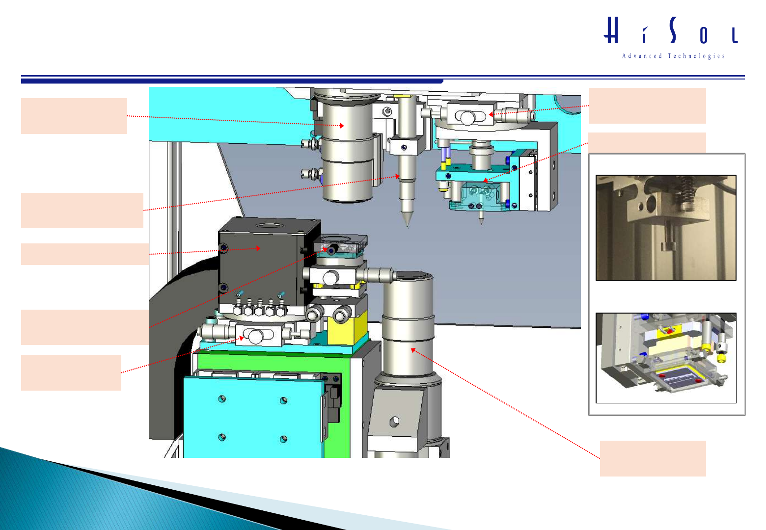 パルスヒータ 仕様 下向きカメラ ( キバン側認識 ) 接着剤ディスペンサ ※オプション ピックアップヘッド 上向きカメラ ( チップ裏面認識 ) ステージθ軸 ( マニュアル調整 ) ボンディングステージ 常温 仕様 ヘッド側θ軸 ( マニュアル調整 ) ピックアップステージ ( トレイをセット ) M90 内部機構イメージ