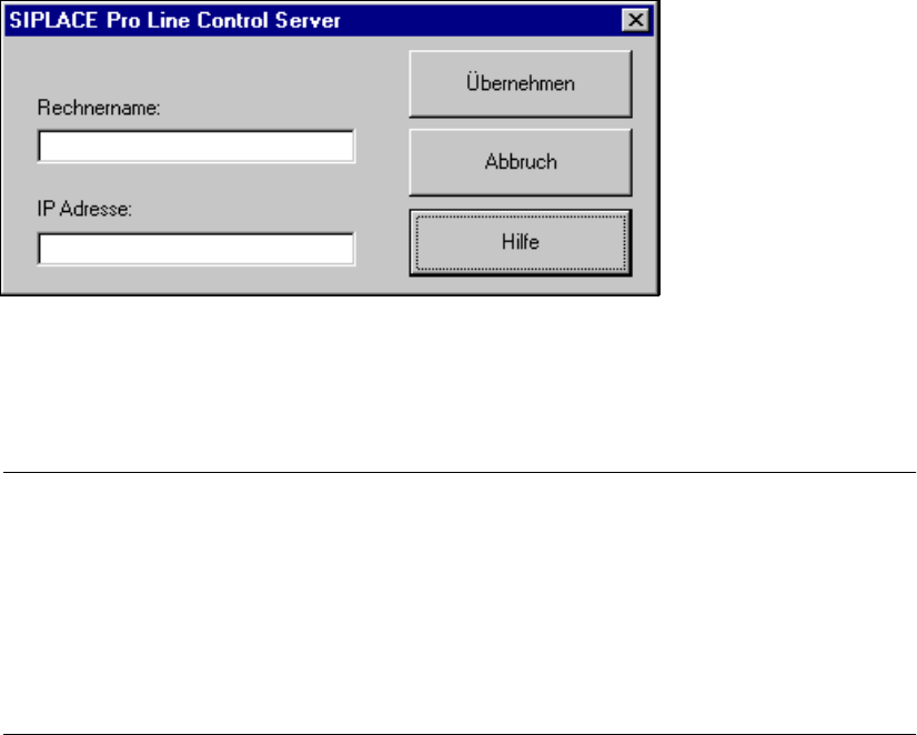 ner, auf dem der zuständige SIPLACE Pro Line Control Server installiert ist, das Dialogfen-