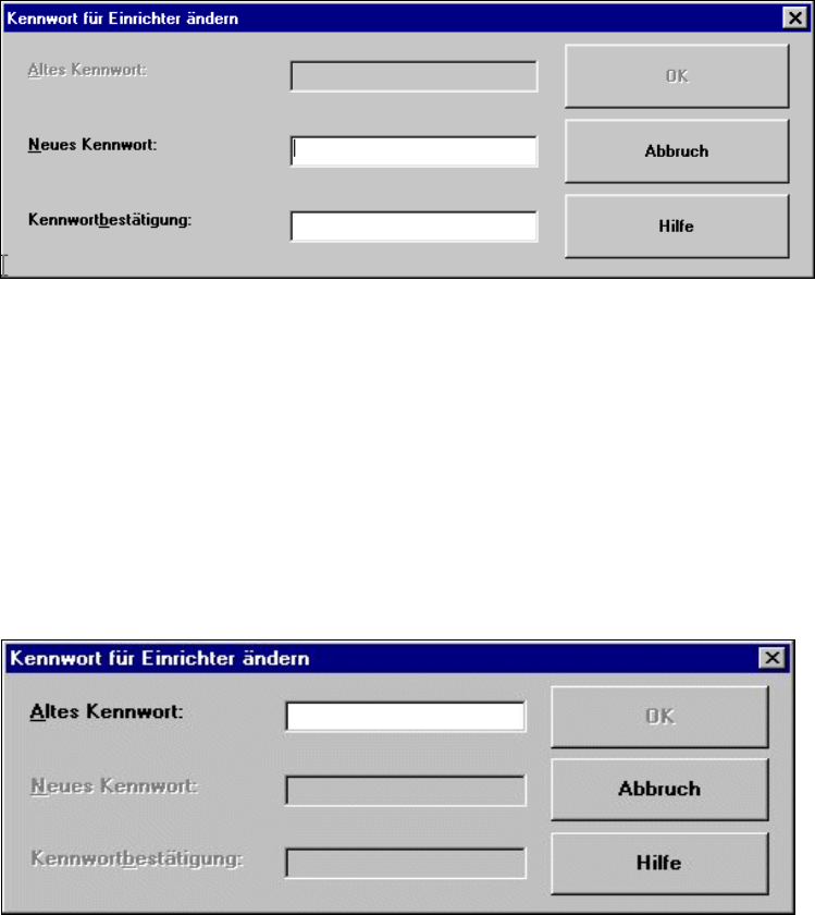 Å Klicken Sie das Editierfeld "Altes Kennwort" an, und geben Sie das bestehende Kennwort ein.