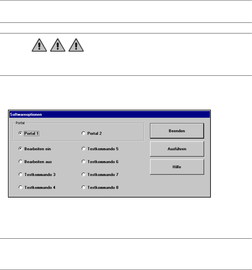 Die Einstellung und Ausführung der Testkommandos darf nur von Servicetechnikern vorgenom-