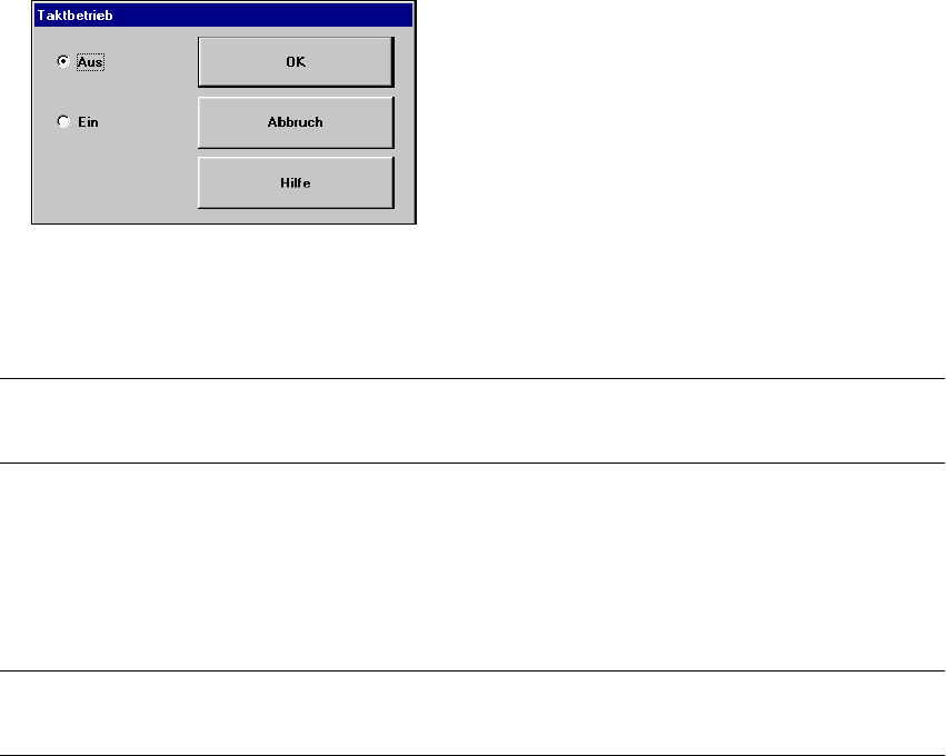 Å Klicken Sie die Schaltfläche OK an. Der Taktbetrieb ist ein- bzw. ausgeschaltet.