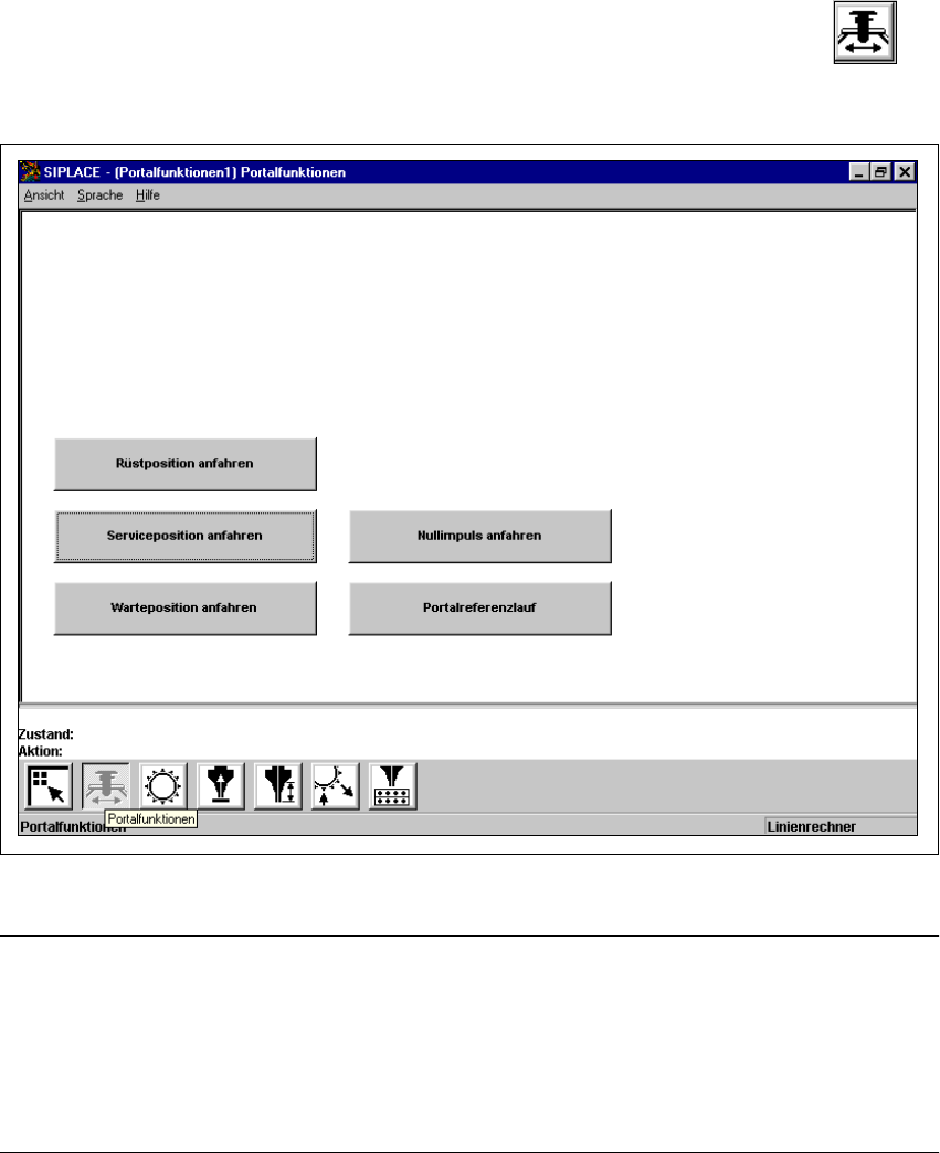 5 Einzelfunktionen Betriebsanleitung SIPLACE 80S-20/F4 5.2 Einzelfunktionen Portal Softwareversion SR.406.xx Ausgab e 02/2000 DE 178 HINWEIS Befindet s ich noch e ine ander e Pipette am IC-Kopf, wi rd diese v orher auto …