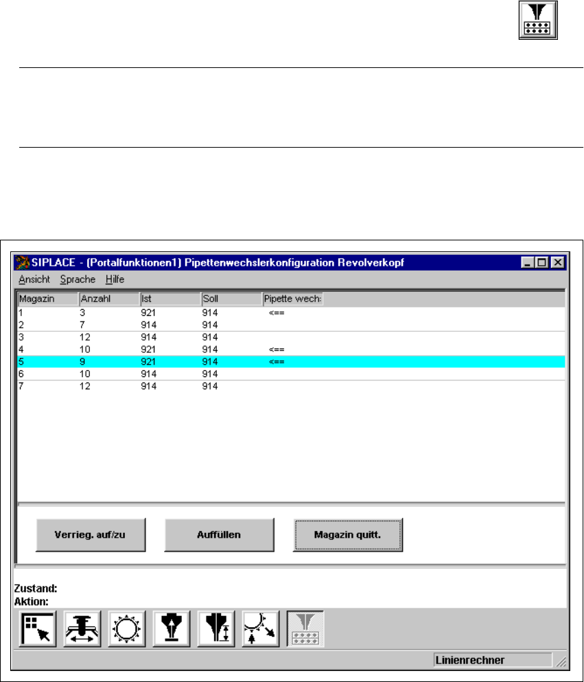 Bei Aufruf dieser Ansicht werden die Pipetten, die sich am Bestückkopf befinden, abgelegt.5