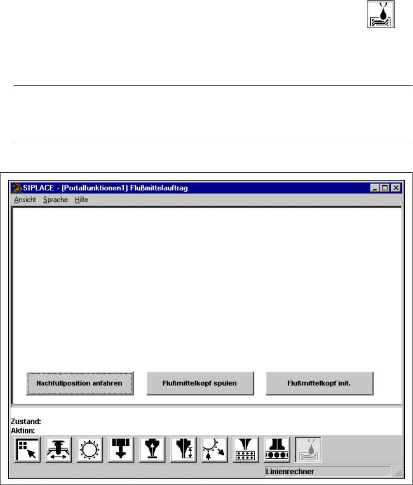 Die Bedienoberfläche wird auf die Ansicht "Flußmittelauftrag" umgeschaltet (siehe