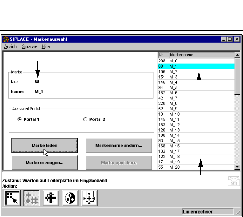 Die Schaltfläche ’Marke laden’ ist beispielsweise nur aktiv, wenn Sie zuvor im Listenfeld eine