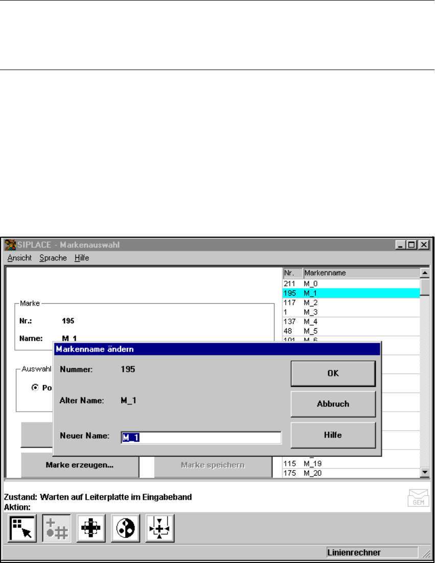 Abb. 6.5 - 11 Menü ’Markenauswahl’, Option ’Marke erzeugen’, Eingabebox