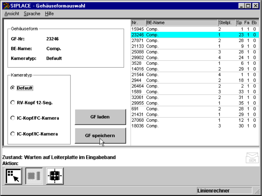 Der Stationsrechner fordert vom Linienrechner die GF-Daten der gewählten Gehäuseform. Der In-