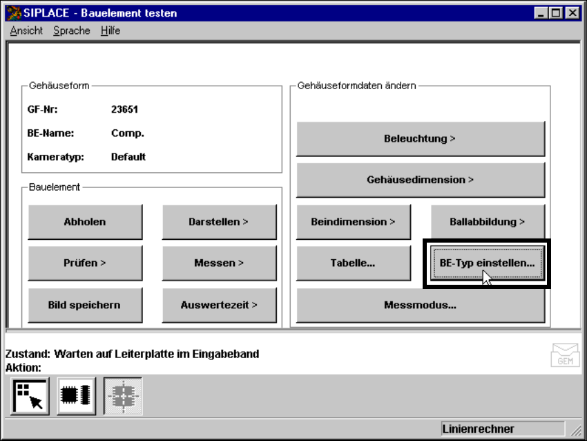 Abb. 6.6.43 Menü ’Bauelement testen’, Option ’BE-Typ einstellen’ (nur bei F-Automaten)