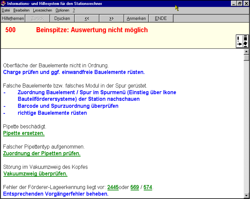 – grüner unterstrichener Text Aufruf von zusätzlichen Informationen zur Fehlerursache