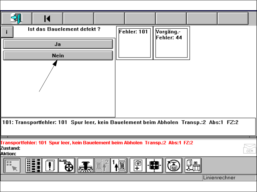 Betriebsanleitung SIPLA CE 80S-20/F4 8 Fehlerinfo und Diagnose Softwareversion SR.406.xx Ausgabe 02/2000 DE 8. 4 Diagnose 401 Å Beant worten Si e die gefo rderte Frage , indem S ie den entsprec henden Bu tton klic ken. A…